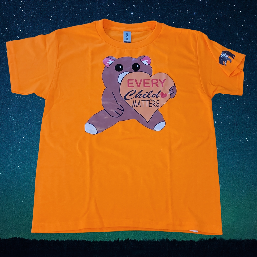 Choose your size and material to receive your Indigenous designed and made Bear 'Every Child Matters' attire!