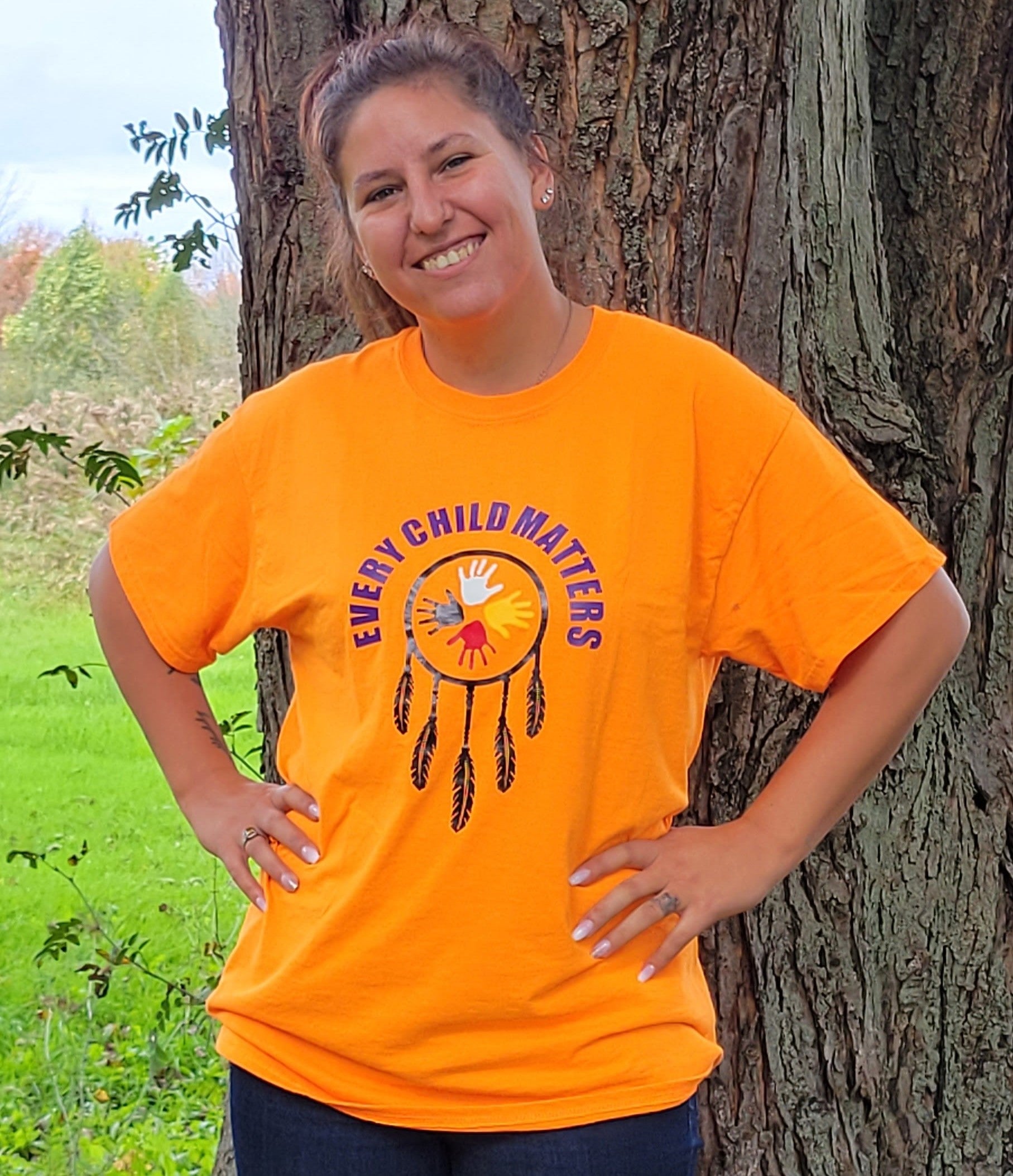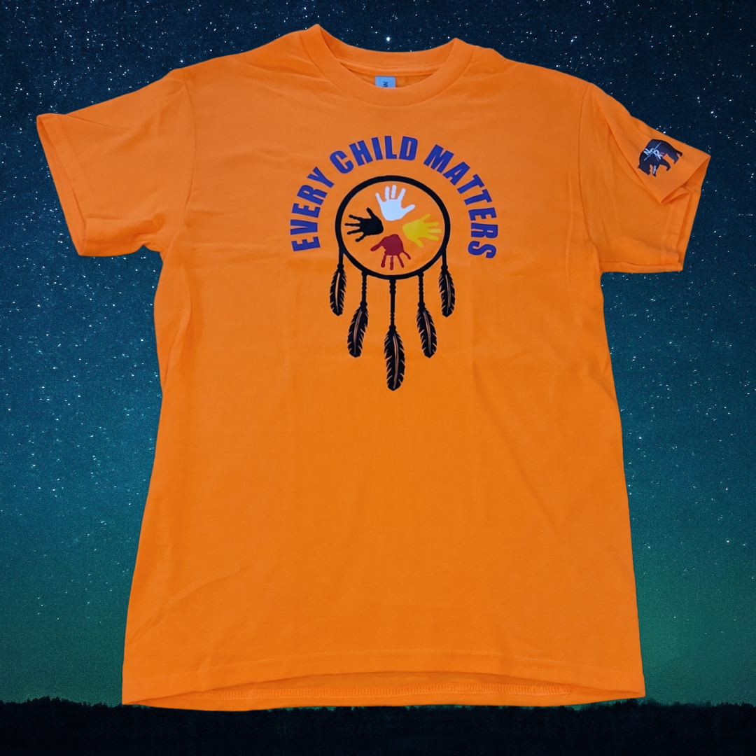 Choose your size and material to receive this Indigenous designed and made Dreamcatcher 'Every Child Matters' attire!